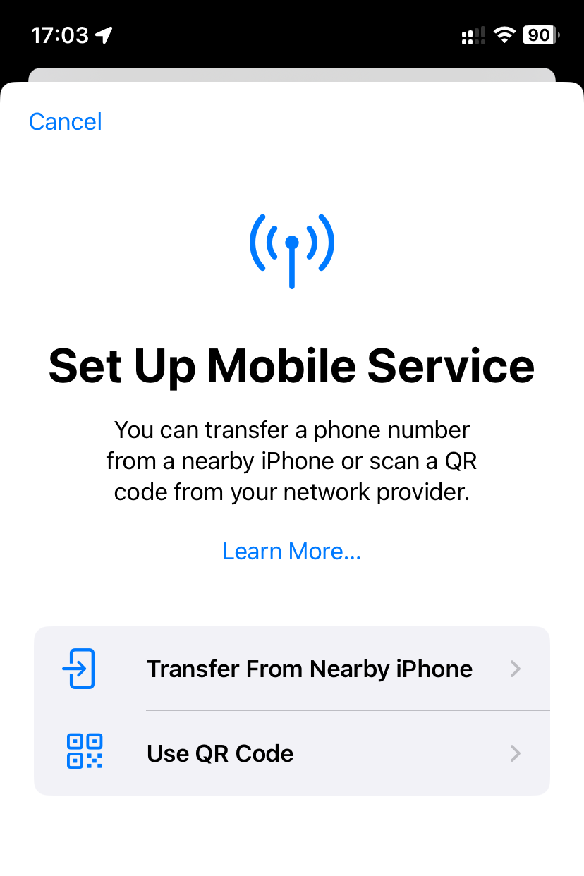 an iPhone that supports eSIM (for example, iPhone XR, iPhone XS, iPhone 11 or newer)
