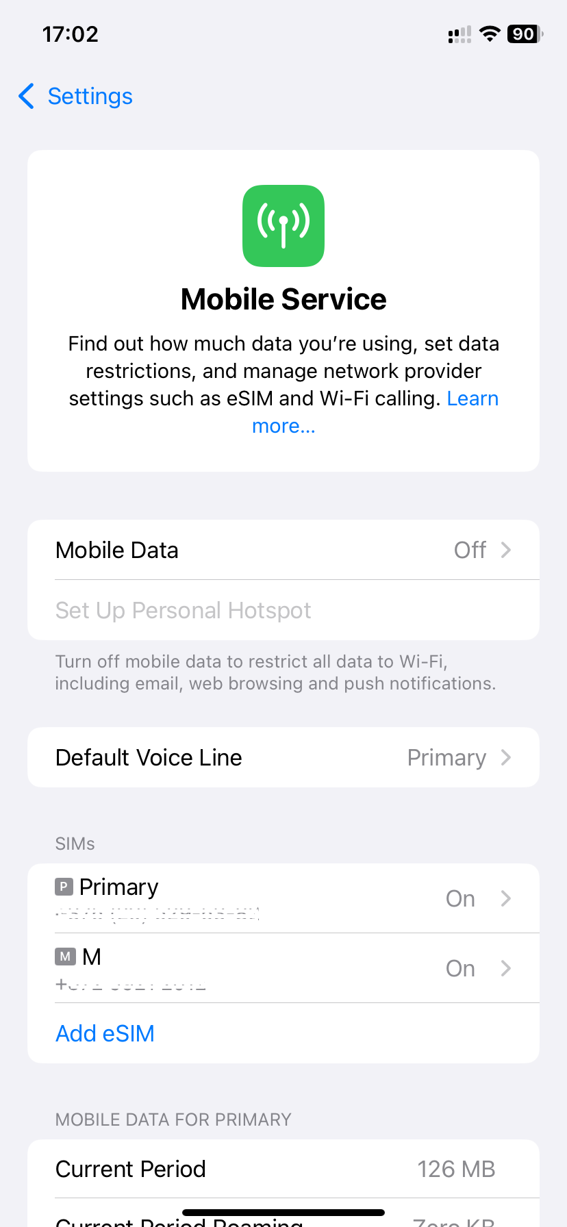 Scroll down the page with your eSIM details and tap Delete eSIM at the bottom: