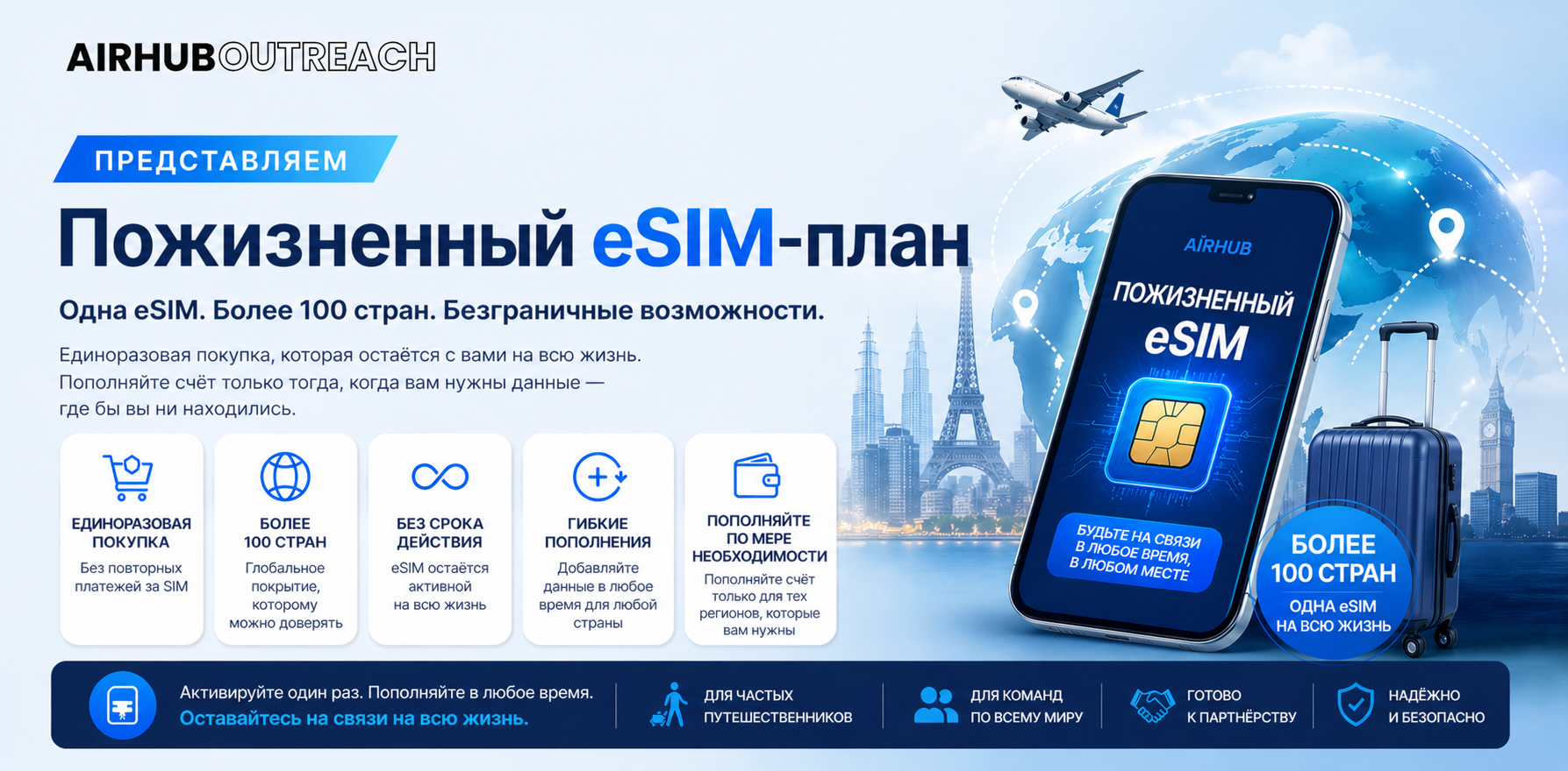Провайдер Airhub решил навсегда избавить путешественников от головной боли с покупкой новых SIM-карт перед каждой поездкой. Компания представила тариф Lifetime eSIM, который не требует ежемесячных платежей и не умирает после возвращения из отпуска.
