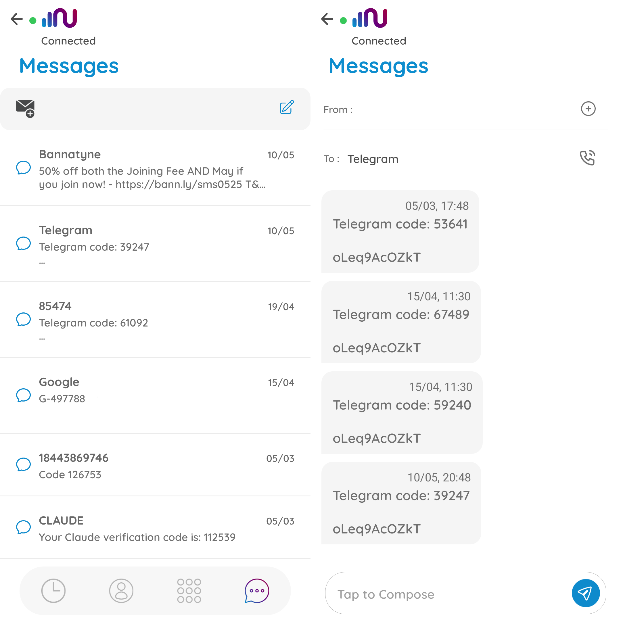 Check the text of an SMS that was sent to your rented virtual phone number in order to receive a one-time verification code for signing up or logging in to a social network or any other online service.