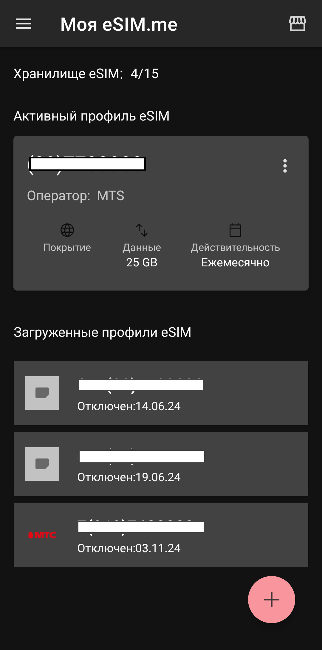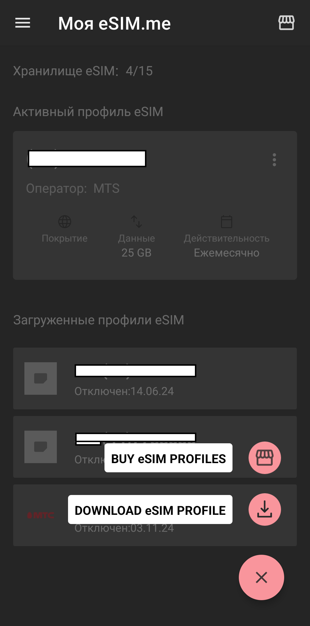 Убедитесь, что по завершении предыдущих действий на главном экране приложения eSIM.me отображается новый профиль eSIM: