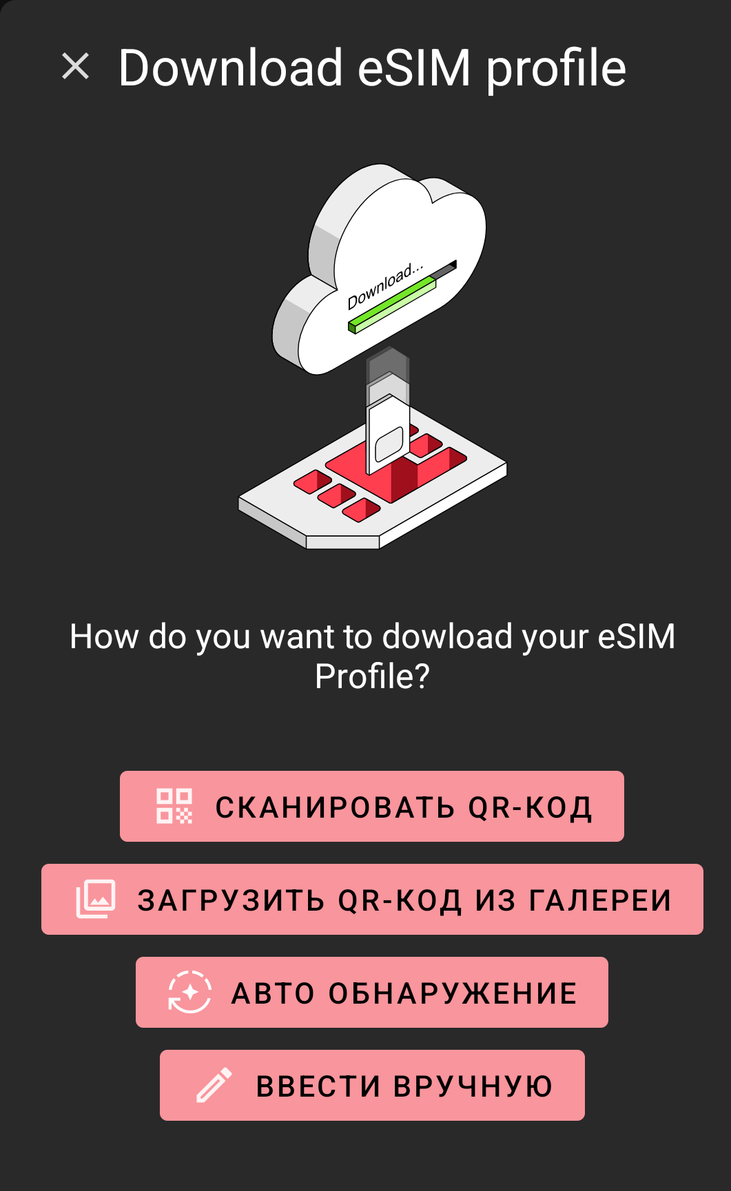 Выберите в выскользающем меню пункт DOWNLOAD eSIM PROFILE: