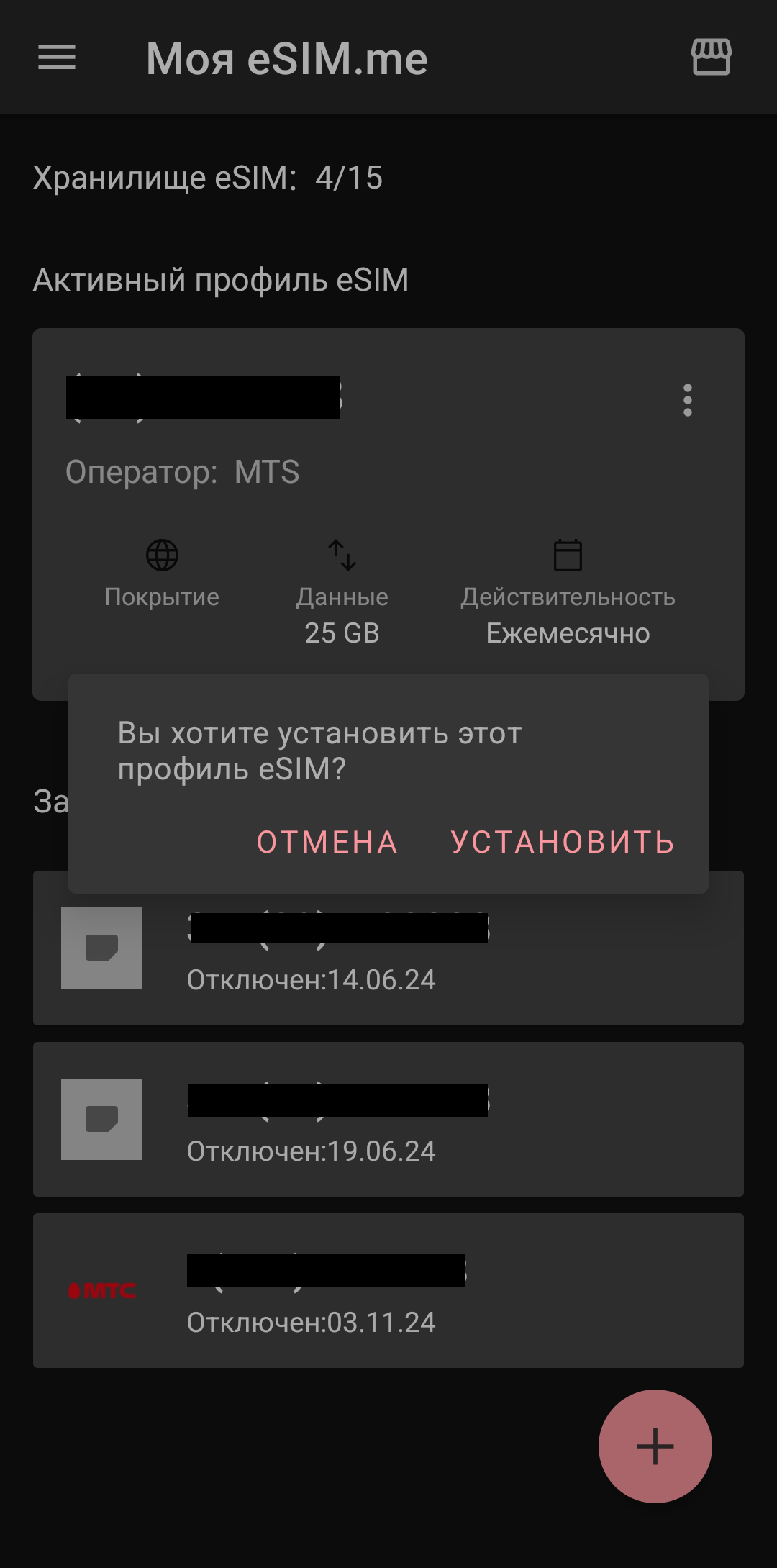 на ваш смартфон установлено мобильное приложение eSIM.me;