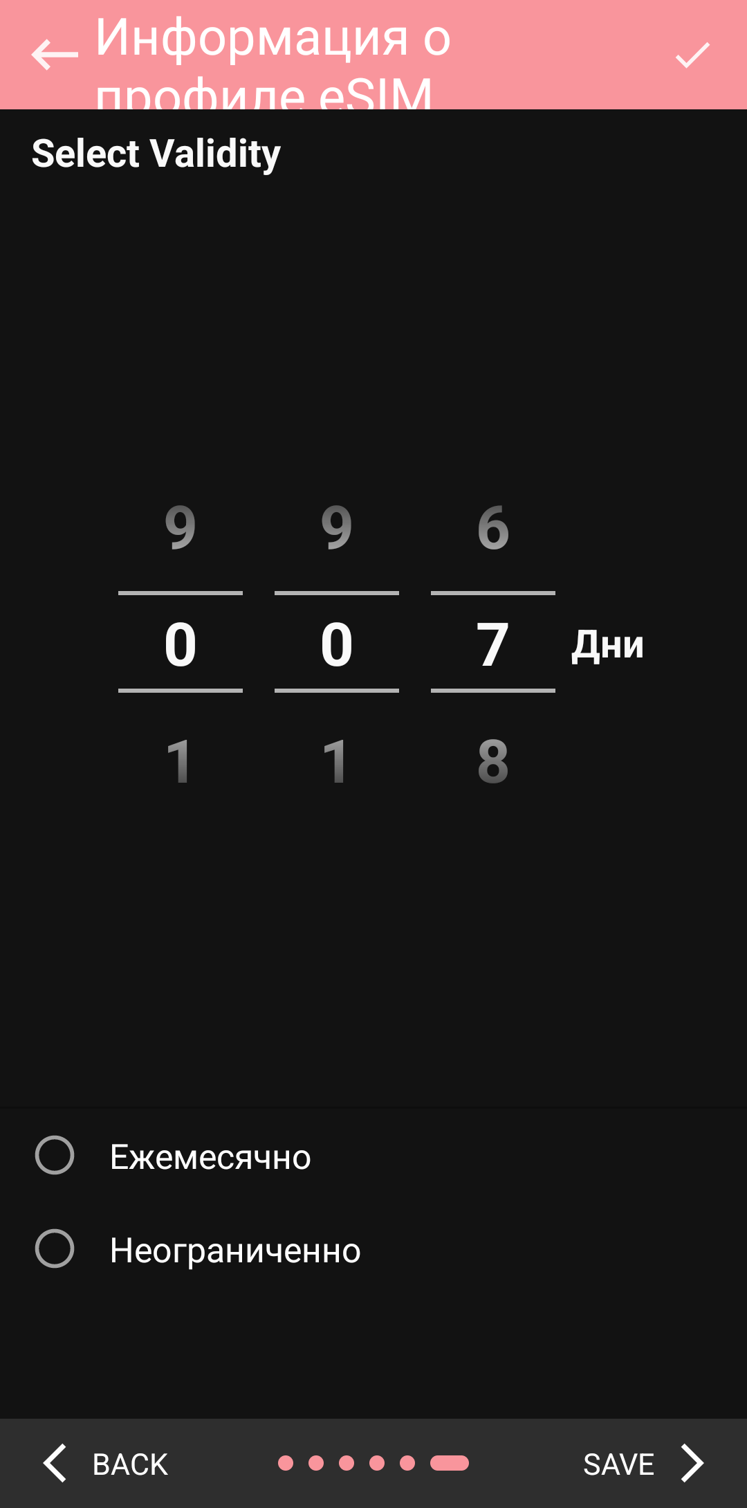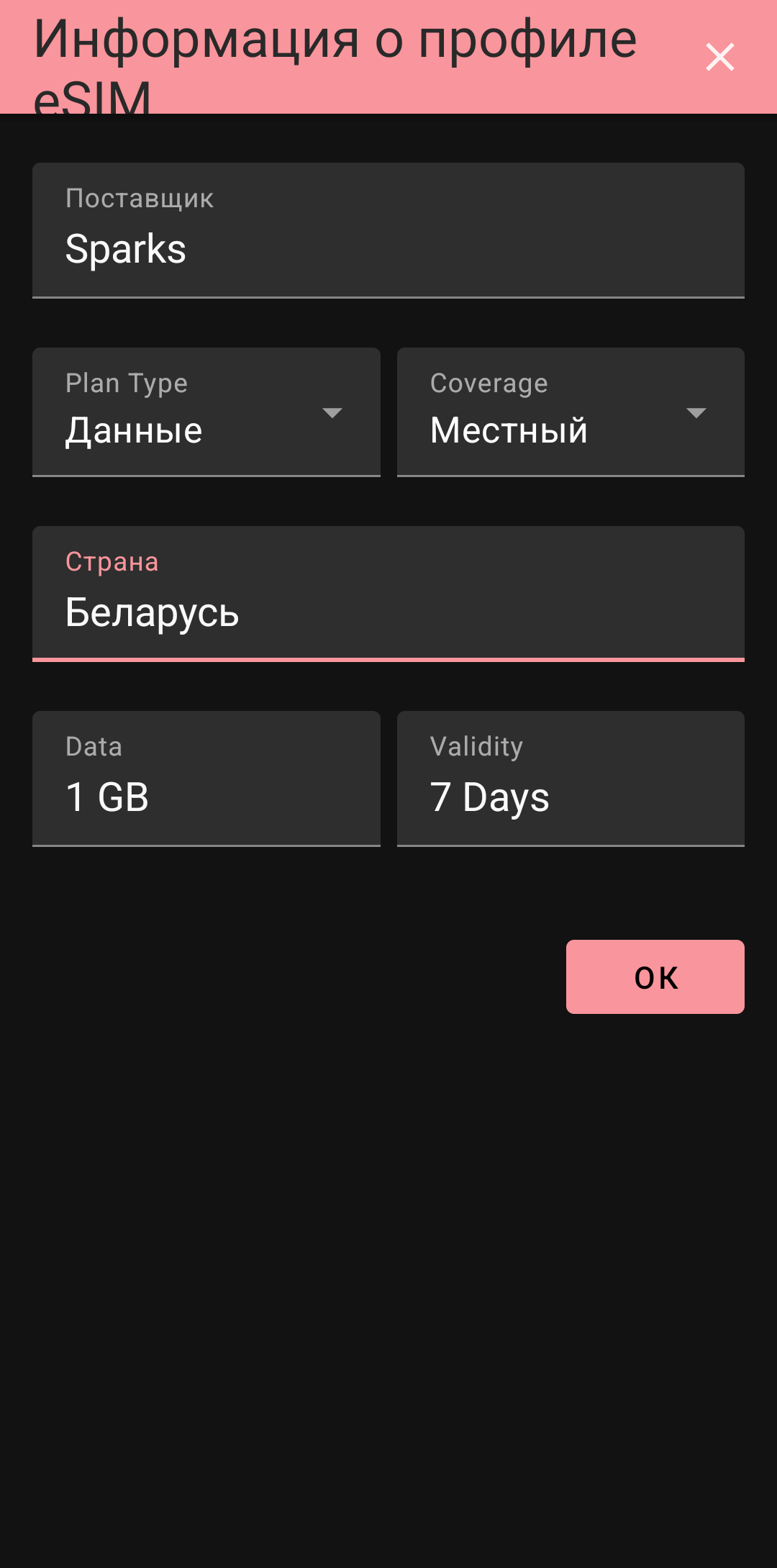 Заполните по желанию последовательно данные на шагах Select Plan Type, Select Coverage, Select Countries, Select Amount of Data, Select Validity и сохраните их нажатием на кнопку OK: