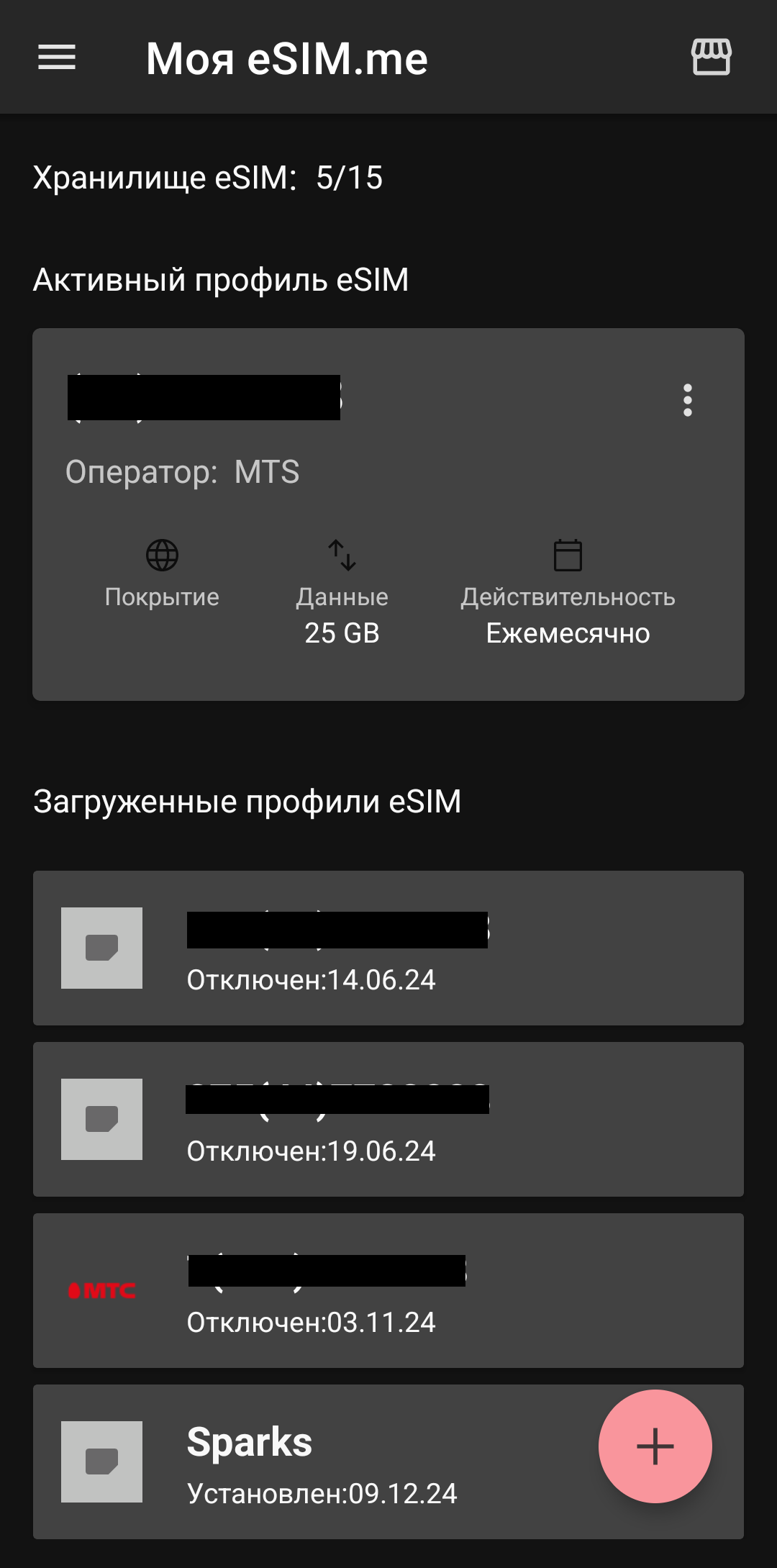 Откройте приложение eSIM.me и нажмите на кнопку + справа внизу: