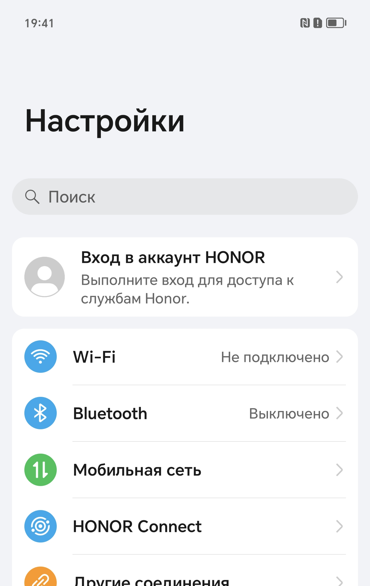 Откройте «Настройки» на вашем Honor и выберите «Мобильная сеть»: