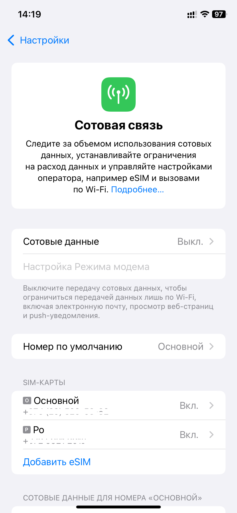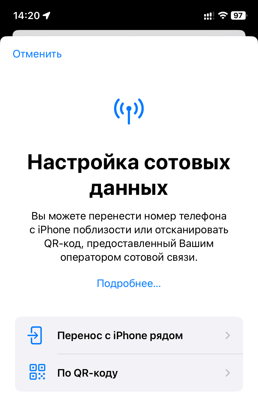 смартфон iPhone, поддерживающий eSIM (например, iPhone XR, iPhone XS, iPhone 11 и новее) с минимальной версией iOS 12.1 или выше;
