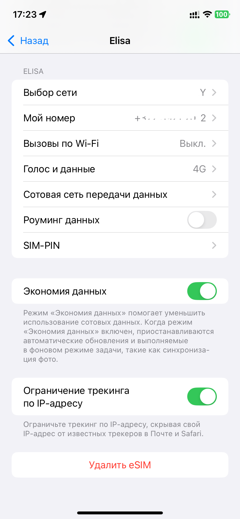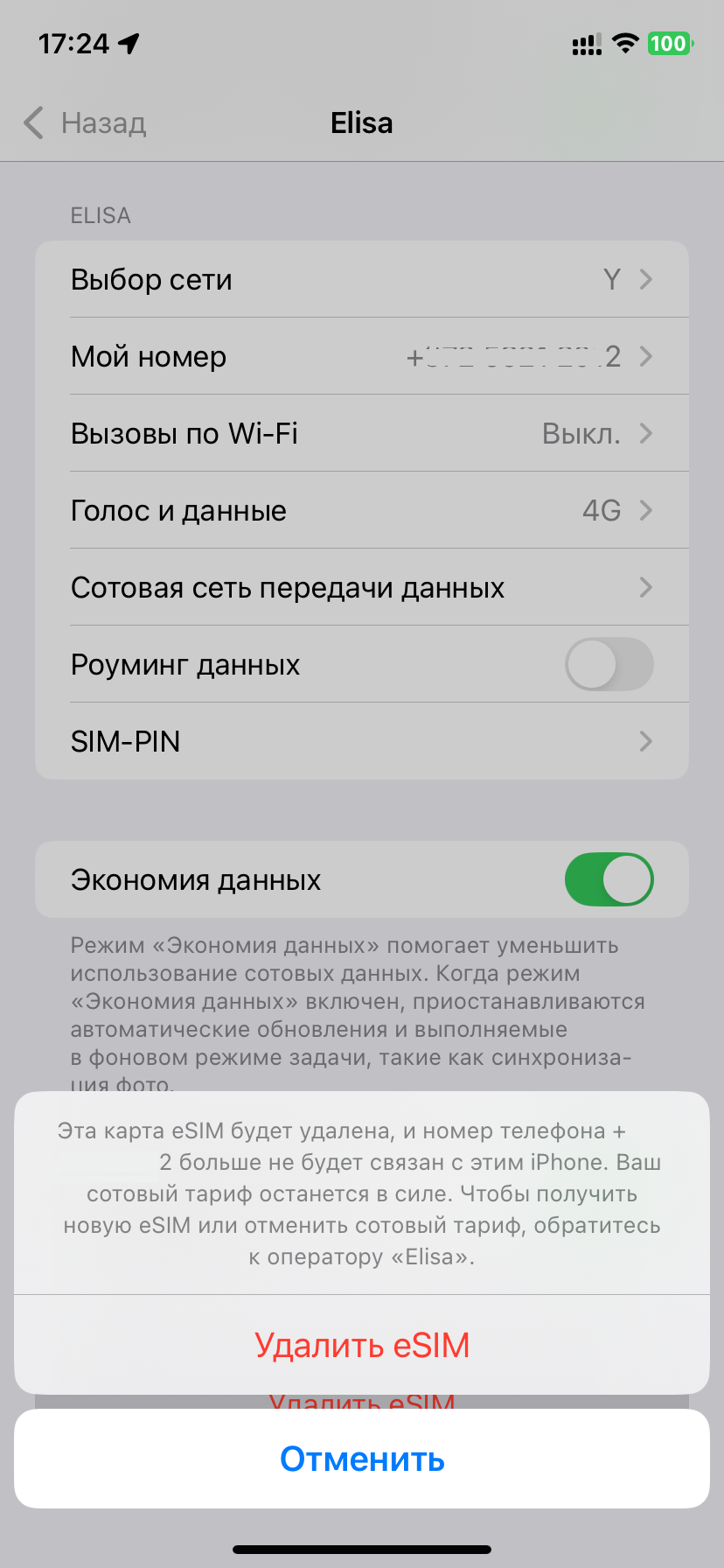 Профиль eSIM, который вы желаете удалить, не заблокирован мобильным оператором.
