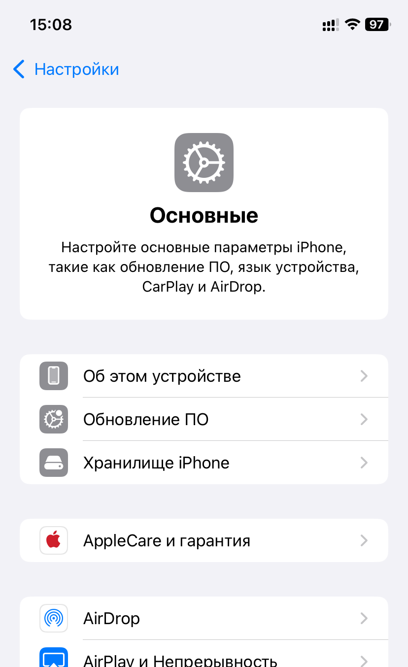 Выберите на экране «Основные» пункт «Об этом устройстве»: