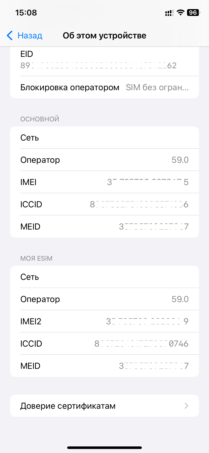 Прокрутите экран «Об этом устройстве» вниз, чтобы увидеть информацию о вашей eSIM, включая ICCID: